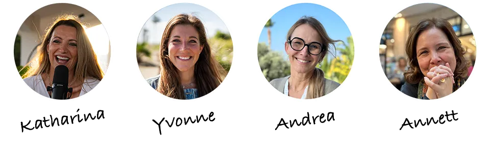Hinter der Business School steht geballte Expertise: Katharina, Yvonne, Andrea und Annett sind DIE Geschäftsleitung der Fortune Family mit insgesamt über 50 Jahren Erfahrung in Coaching, Marketing, Verkauf und Business-Aufbau.